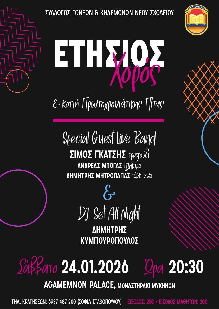 ΕΤΗΣΙΟΣ ΧΟΡΟΣ ΚΑΙ ΚΟΠΗ ΠΡΩΤΟΧΡΟΝΙΑΤΙΚΗΣ ΠΙΤΑΣ ΝΕΟΥ ΣΧΟΛΕΙΟΥ- ΣΥΛΛΟΓΟΥ ΓΟΝΕΩΝ ΚΑΙ ΚΗΔΕΜΟΝΩΝ ΝΕΟΥ ΣΧΟΛΕΙΟΥ!!
